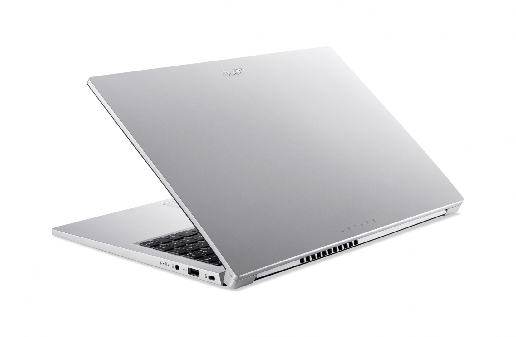 Laptop Acer Aspire Lite 15 AL15-33P-37W4, 15.6 inch (39.62 cm), Acer ComfyView™ FHD IPS Display with LED-backlight, 1920 x 1080, 16:9, Intel® Core™ 3 processor N355, 1.9 GHz base clock (Up to 3.9 GHz max. performance clock rate), 6 MB Intel® Smart Cache, 8 / 8, , video Intel® Graphics, RAM 8 GB DDR5 RAM (1 x 8 GB DDR5 RAM), Up to 16 GB DDR5 RAM (1x 16 GB soDIMM), SSD 512GB PCIe NVMe Solid-State-Drive (SSD) , no ODD, No Card reader, Two built-in stereo speakers, dual digital microphones, FHD Webcam, No LAN, WLAN Wi-Fi 6 (802.11a/b/g/n/acR2+ax), Bluetooth® 5.1, No Fingerprint reader, Porturi: 3x (1x Type-A Gen 1, 2x Type-C Gen 2), 1 x (Type-C), 1x HDMI® 1.4, No Ethernet (RJ-45), 1x 3.5 mm speaker/headphone/line-out (supports headsets with integrated microphone), 51,3W power adapter (USB Type C adapter), Baterie Li-Ion Battery (3 cell/ 6000 mAh / 45 Wh / 7.6 V), No Backlit keyboard, Light Silver, Greutate 1.43 kg, Dimensiuni 357.85 x 235.65 x 18.0 mm (W x D x H), No OS (Boot-up only)