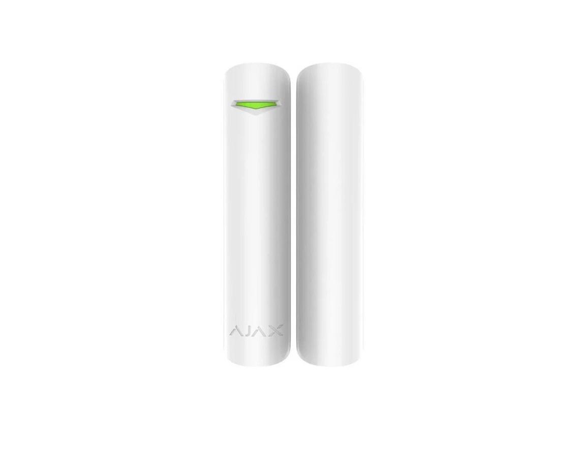 Contact magnetic DoorProtect, wireless, alb – AJAX; Interspatiu: max. 2 cm cu magnetul mare, max. 1cm cu magnetul mic; Timp alarmare: 0.15 s; Senzori: contact Reed, 2.000.000 deschideri durata viata; Frecventa operare: 868.0 – 868.6 MHz; Putere RF: autoajustabila max. 20 mW; Criptare: AES; Distanta comunicare: max. 1200 m, bidirectionala; Perioada interogare: 12-300 s, Protectii: tamper dublu, detectie bruiaj; Alimentare: 3 Vcc (CR123A); Durata viata baterie: max. 7 ani; Temperatura operare: -10°C ÷ 40°C; Utilizare: interior; Dimensiuni: 90 x 20 mm; Greutate: 29 g; Culoare: ALB; Posibilitate conectare contact cablat; Compatibilitate: Hub, Hub Plus, Hub 2, Hub 2 Plus, ReX, ReX 2, ocBridge Plus, uartBridge; Security Grade 2, EN 50131