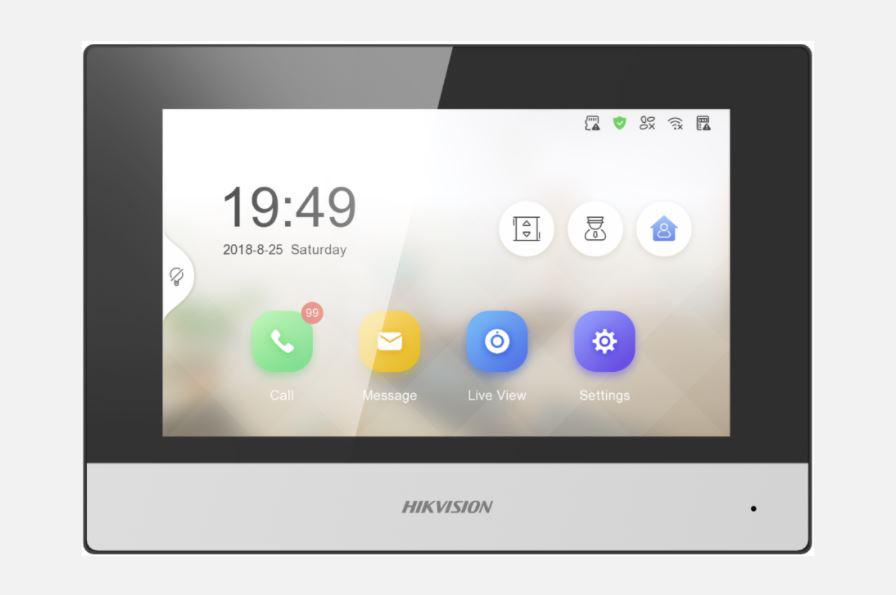 Monitor videointerfon WIFI 7inch color Hikvision DS-KH6320-WTE2; conectare pe 2 fire, ecran LCD 7 color cu touch screeen, rezolutie ecran 1024 x 600; design modern; conectivitate: Wi-Fi 802.11b/g/n; TCP/IP, SIP, RTSP; RS-485, comunicare audio video bidirectionala; memorare poze si mesaje pe card (DS-KH6320-WTE2)