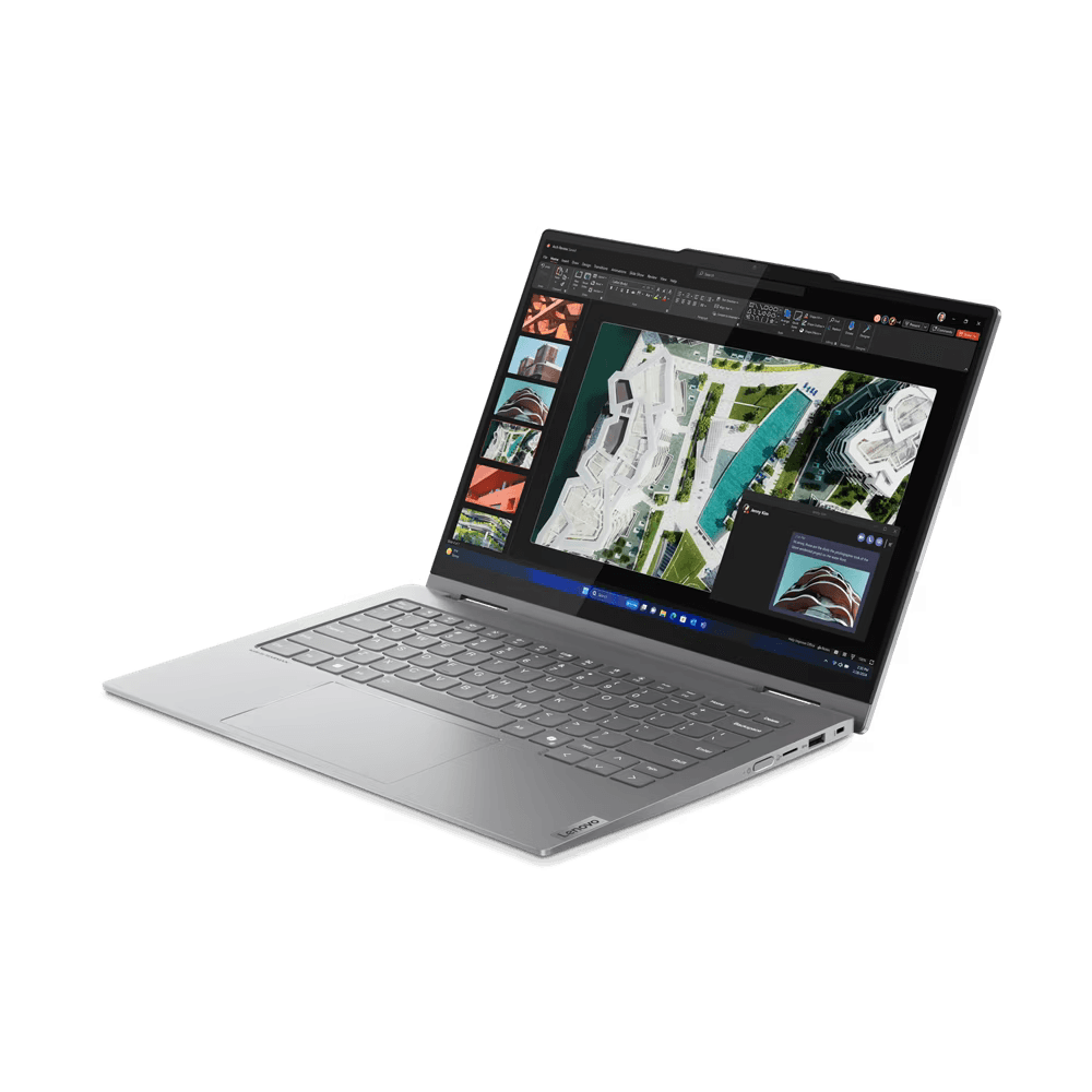 Laptop Lenovo ThinkBook 14 2-in-1 G4 IML;14″ WUXGA (1920×1200) IPS 300nits Glossy / Anti-fingerprint, 100% sRGB, Corning® Gorilla® Glass, Touch;Intel® Core™ Ultra 5 125U, 12C (2P + 8E + 2LPE) / 14T, Max Turbo up to 4.3GHz, 12MB;Video Integrated Intel® Graphics;RAM 1x 16GB SO-DIMM DDR5-5600, Two DDR5 SO-DIMM slots, dual-channel capable, Up to 32GB DDR5-5600;SSD512GB SSD M.2 2242 PCIe® 4.0×4 NVMe®, Optical: no ODD;microSD Card Reader, Speakers: Stereo speakers, 2W x2, Dolby® Atmos®, audio by HARMAN, Camera: FHD 1080p + IR Hybrid with Privacy Shutter, LAN: No Onboard Ethernet;WLAN Wi-Fi® 6E, 11ax 2×2;Bluetooth 5.3, WWAN (3G/4G): None, Fingerprint: Touch Style, Match-on-Chip, Integrated in Power Button;I/O Ports: 1x USB-A (USB 5Gbps / USB 3.2 Gen 1), 1x USB-A (USB 5Gbps / USB 3.2 Gen 1), Always On, 1x USB-C® (USB 10Gbps / USB 3.2 Gen 2), with USB PD 3.0 and DisplayPort™ 1.4, 1x USB-C® (Thunderbolt™ 4 / USB4® 40Gbps), with USB PD 3.0 and DisplayPort™ 1.4, 1x HDMI® 2.1, up to 4K/60Hz, 1x Headphone / microphone combo jack (3.5mm), 1x microSD card reader;65W USB-C® (3-pin);Battery Integrated 60Wh, Keyboard: Backlit, English, Buttonless glass-like Mylar® surface multi-touch touchpad, supports Precision TouchPad (PTP), 75 x 120 mm (2.95 x 4.72 inches), Color: Luna Grey;Weight 1.64 kg;Dimensions 313 x 224 x 16.9-18.5 mm, Warranty: 3Y Onsite upgrade from 1Y Courier/Carry-in Windchill (CPN), OS: Windows® 11 Pro, Romanian / English