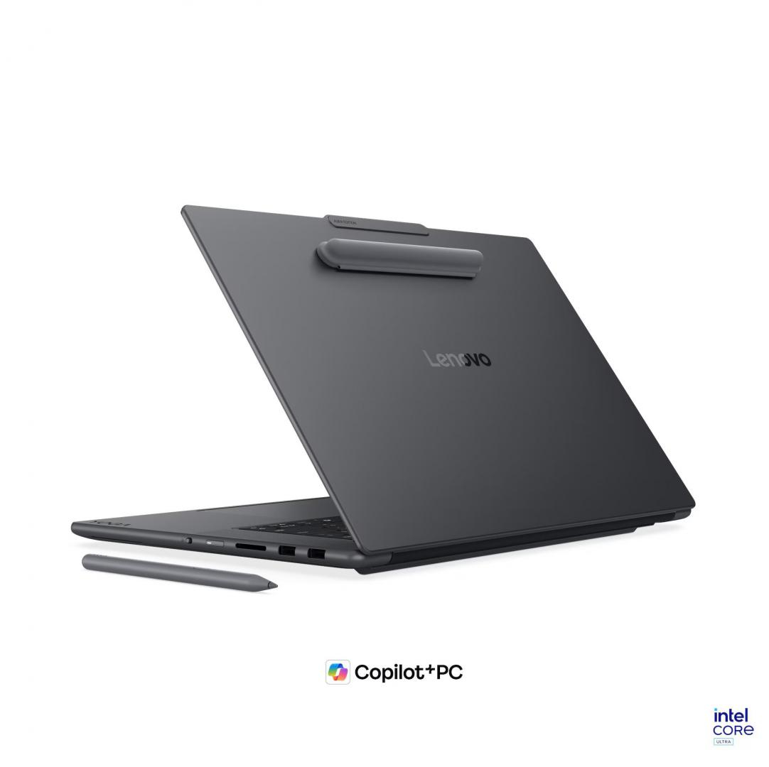 Laptop Lenovo Yoga Pro 9 16IPH11, 16″ 2.8K WQXGA+ (2880×1800) OLED 1100nits (peak) / 500nits (typical) Glossy / Anti-fingerprint, 100% P3, 100% sRGB, 99% Adobe® RGB, 120Hz, Eyesafe®, Dolby Vision®, Flicker Free, DisplayHDR™ True Black 1000, Corning® Gorilla® Glass 3, Touch, X-Rite®, TCON, PureSight Pro, Intel Core™ Ultra 7 356H, 16C (4P + 8E + 4LPE) / 16T, Max Turbo up to 4.7GHz, 18MB Intel® Smart Cache; Copilot+ PC; Up to 50 TOPS, video NVIDIA GeForce RTX™ 5060 8GB GDDR7, RAM 1x 32GB Soldered LPDDR5x-7467; Memory soldered to systemboard, no slots, dual-channel; 32GB soldered memory, not upgradable, SSD 1TB SSD M.2 2242 PCIe® 4.0×4 NVMe®, no ODD, SD Card Reader, 6 stereo speakers, 2W x4 (dual side woofers), 2W x2 (tweeters), optimized with Dolby Atmos®, Smart Amplifier (AMP), 5.0MP + IR with E-shutter, No Onboard Ethernet, WLAN Wi-Fi® 7, 802.11be 2×2, Bluetooth 5.4, WWAN Not Supported, No Fingerprint Reader, Porturi: 1x USB-A (USB 10Gbps), Always On; 1x USB-A (USB 10Gbps); 2x Thunderbolt™ 4, with USB PD 65-100W and DisplayPort™ 2.1; 1x HDMI® 2.1, up to 8K/60Hz; 1x Headphone / microphone combo jack (3.5mm); 1x SD card reader (UHS-II); 1x Slim tip power connector, 245W Slim Tip (3-pin), Baterie Integrated 92.5Wh, Backlit, English, Thunder Grey, Greutate 1.90 kg, Dimensiuni 360.8 x 248.9 x 17.3 mm, 3Y Premium Care with Onsite upgrade from 2Y Depot/CCI (CPN), Accesorii None, Windows® 11 Pro, Romanian / English
