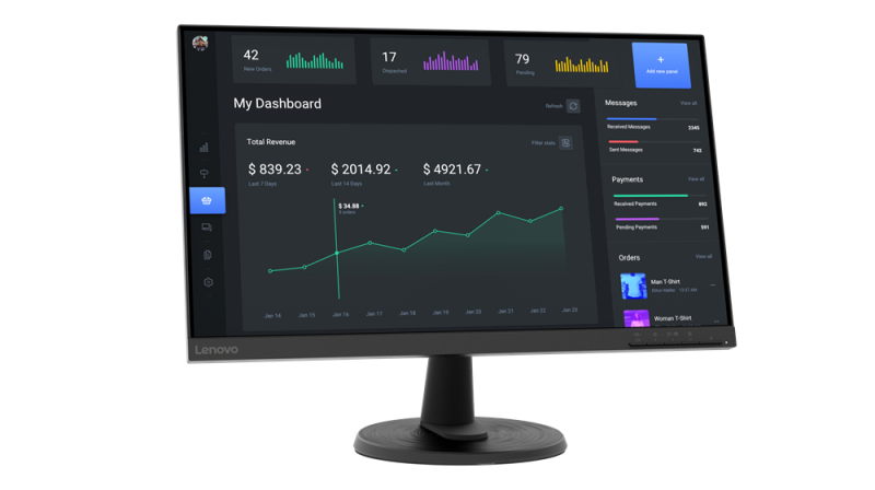 Monitor Lenovo C24-40 Monitor; 23.8″VA, FHD (1920×1080), 16:9, Brightness: 250 cd/m², Contrast ratio: 3000:1, Response time: 7ms (Level 1) / 6ms (Level 2) / 5ms (Level 3) / 4ms (Level 4) / 19ms (Off mode), Dot / Pixel Per Inch: 92 dpi, Color Gamut: 72% NTSC, View angle: 178° / 178°, Stand: Tilt Stand, Side Bezel Width: 1.8 mm, Dimensions with Stand: 539.4 x 209.5 x 412.7 mm, Power Comsuption (Typical / Maximum): 16W / 23W, Power Adapter: Integrated, Weight (Including Stand): 3.3 kg, 75Hz, Camera None, dinamic, , 1x HDMI® 1.4, 1x VGA, Color: Raven Black, Base Warranty: 3-year