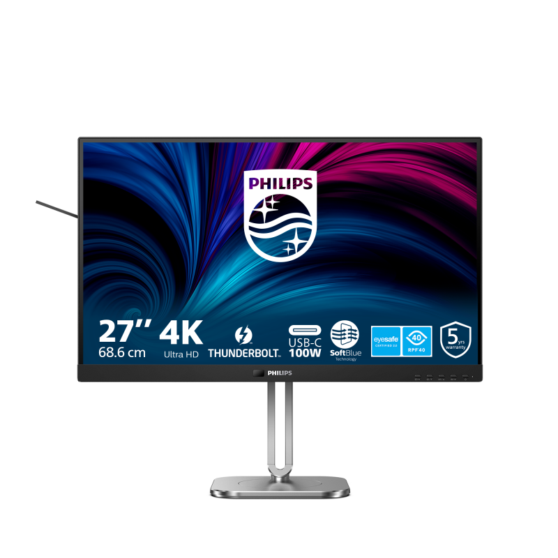 Monitor Philips 27″ 27B2U6903/00, Diagonal (inch): 27, Diagonal (cm): 69, Aspect ratio: 16:9, Panel: IPS, Resolution: 3840×2160, Refresh Rate: 60Hz, Response time GtG: 4ms, Brightness (max): 350 cd/m², Contrast (static) : 1000:1, Contrast (dynamic): 50M:1, Viewing angle: 178/178, Color Gamut Type: sRGB: 110%, NTSC: 96%, Colours: 1.07B, Speakers: 3Wx2, VESA Wallmount: 100×100, Tilt: -5/+30, HAS: 150mm, Swivel: -180/180, HDMI: x2, DisplayPort: x1, USB Hub: USB 3.2 Gen 10 G, în amonte: 1x Thunderbolt 4, 1x USB-C1 (date); în aval: 1x Thunderbolt 4, USB-A x4 (cu x1 pentru încărcare rapidă B.C 1.2), USB-C2x1 (date, 15 W), USB-C: 2x USB-C, USB-C Power Delivery: up to 100W, RJ-45: x1, AUX: x1 3.5mm Audio OUT
