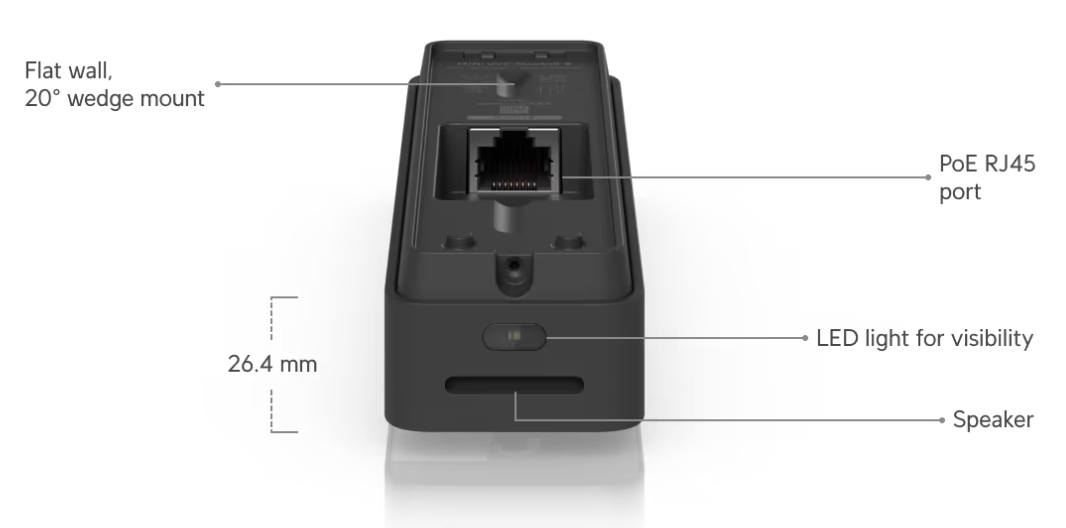 Compact PoE video doorbell with two-way audio and versatile mounting options.