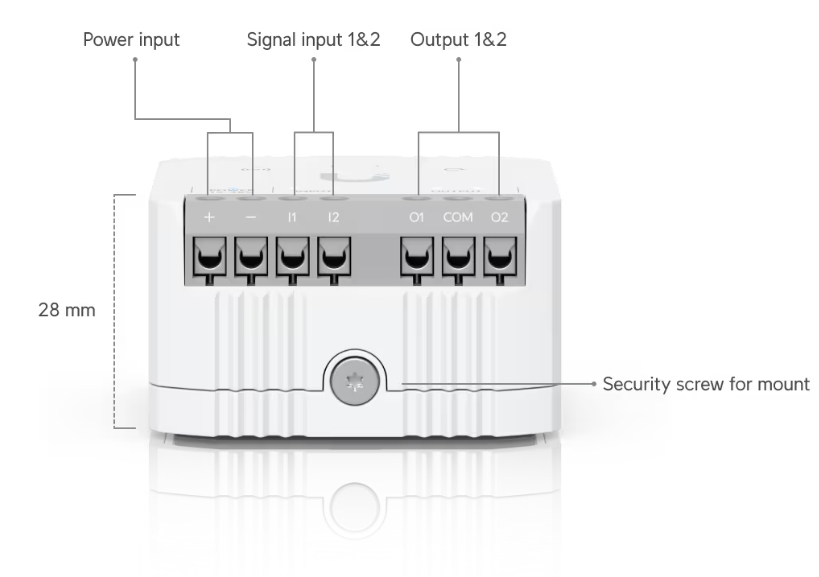O1/COM/O2 Dry contact only (12-48V DC, 12-240V AC) 10A/port, UL total max: 12A IEC total max: 16A