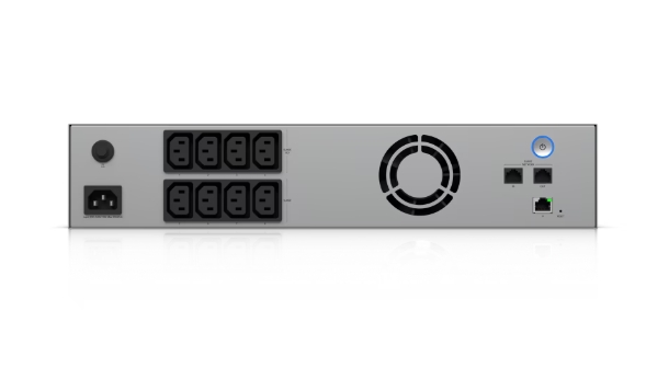 UniFi managed 1.5kVA rackmount uninterruptible power supply with 8 outlets and field replaceable battery, 216Wh, half load (500W) runtime of 8 minutes, UniFi Alarm Manager ready and NUT support for 3rd party devices.