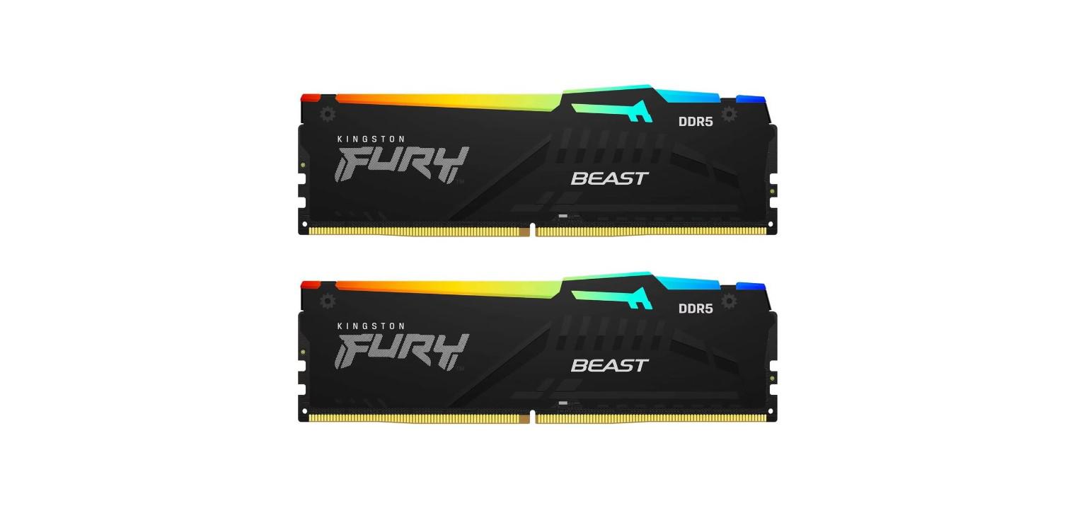 Memorie RAM Kingston, DIMM, DDR5, 64GB, 6000MHz, CL40, 1.35V, FURY Beast, Kit of 2, RGB
