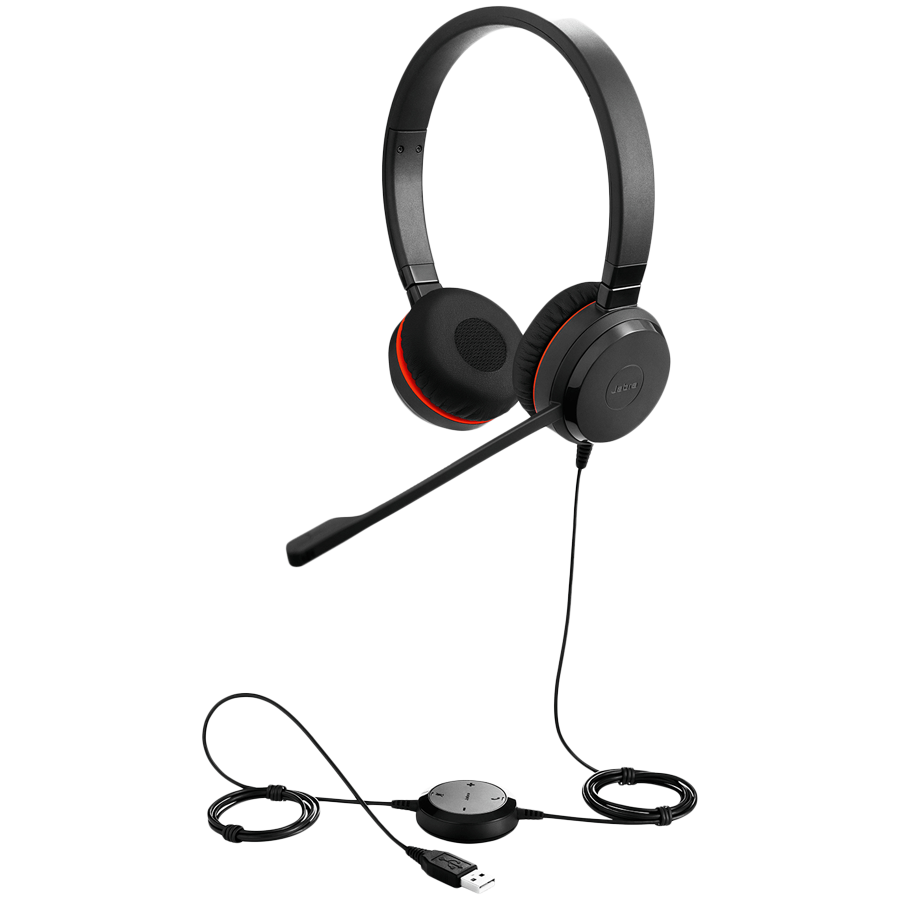 JABRA EVOLVE 20 MS Stereo USB Headband Special Edition Noise cancelling, USB connector, with mute-button and volume control on the cord, with leatherette ear cushion, Microsoft optimized