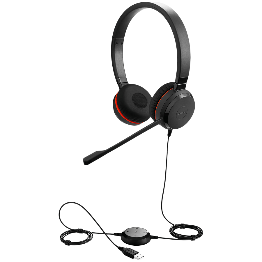 JABRA EVOLVE 30 II MS Stereo USB Headband, Noise cancelling, USB and 3.5 connectivity, with mute-button and volume control on the cord, with leather ear cushion, Microsoft optimized