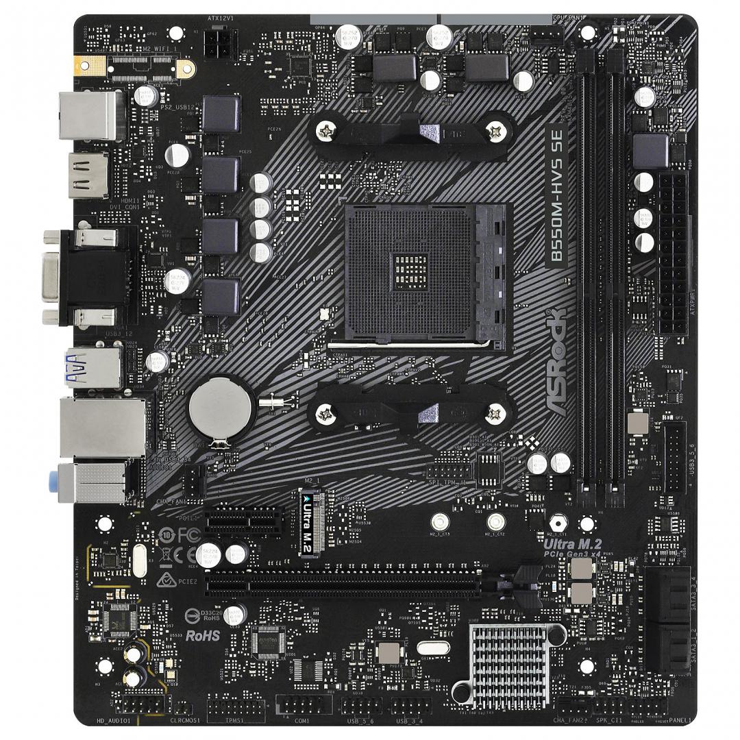 Placa de baza ASROCK B550M-HVS SE AM4, 2x DDR4, 1x PCIE 4.0 x16 1x PCIE3.0 x1, 1x Ultra M.2, 1x D-Sub 1x HDMI, 4x SATA3 6GB/s