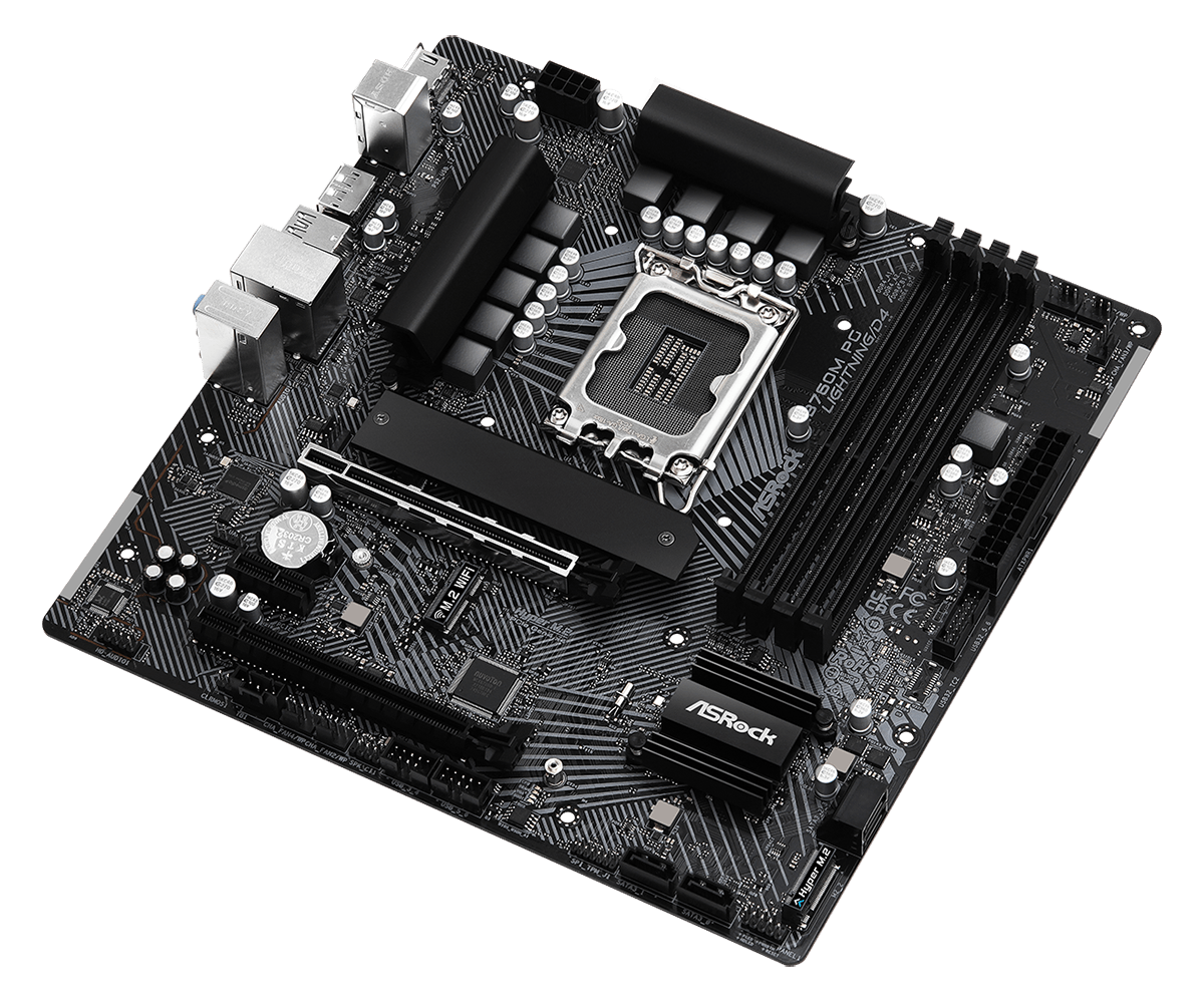 Placa de baza ASROCK B760M PG LIGHTNING LGA1700 4xDDR4, 2x PCIE 4.0 x16 1x PCIE 4.0 x1, 2x Hyper M.2, 1x HDMI 1x DP, 4x SATA 6GB/s, mATX