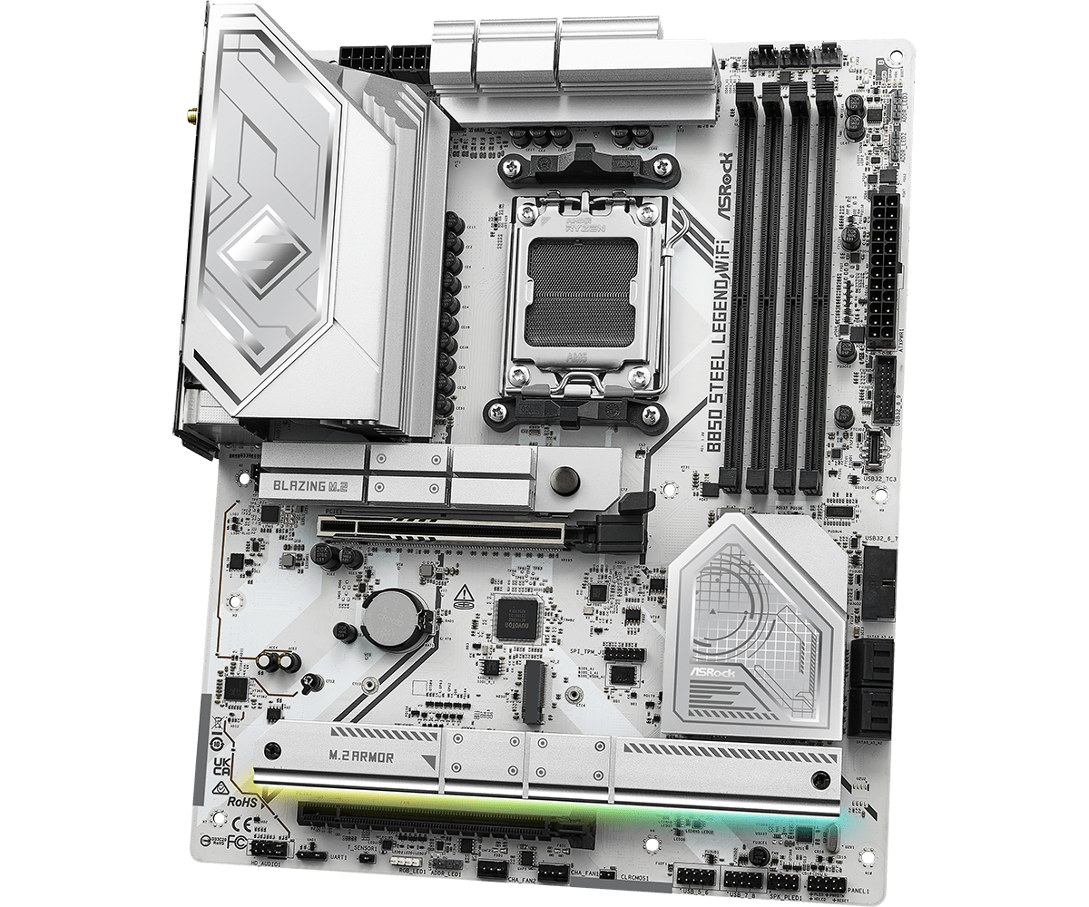 Placa de Baza ASROCK B850 STEEL LEGEND WIFI AM5, 4x DDR5, 1x HDMI, 2x PCIE x16, 5x M.2, 4x SATA 6GB/s, ATX