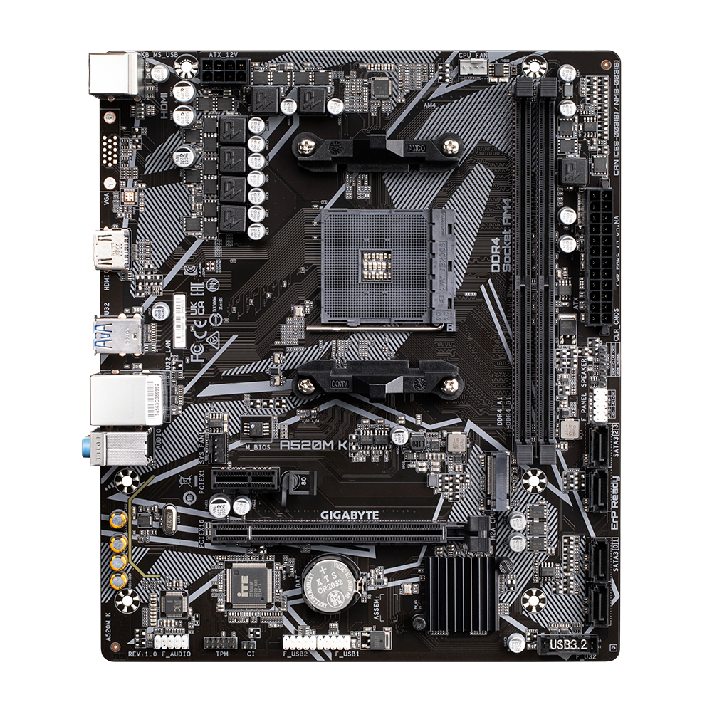 Placa de baza Gigabyte A520M K AM4 DDR4, 2x sloturi RAM, max. 64GB, frecventa maxima suportata 5100MHz, 1x HDMI, 1x PCIe x16, 1x PCIe x1, 1x M.2, 4x conectori SATA 6GB/s, 1x LAN 1Gbps, microATX
