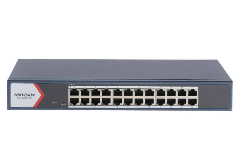 Switch Hikvision DS-3E1524-EIV3: 24 × gigabit RJ45 ports, tensiune alimentare 220 V AC, 50/60 Hz, Max. 0.7 A, dimensiuni: 335.00 mm × 44.50 mm × 175.80 mm, greutate: 1.62kg, montare in rack.